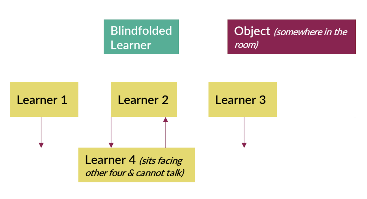 - Ask the learner to make a circle and invite one learner (A) to leave the room.